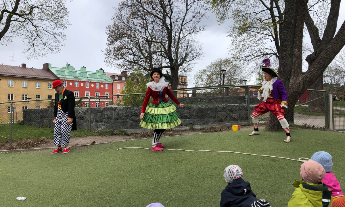 This is an exciting performance that is played outdoors on the preschool / school yard. Three fairy tale archaeologists come to the preschool yard because they heard that a fairy tale had taken place at this very place a long time ago, long before there were houses and toys here. Now they need the help of preschool children to solve the mystery of what fairy tale it was. Together, they must overcome obstacles and challenges. The preschool yard becomes a desert, a castle or a large forest. With courage and imagination, they solve the mystery.